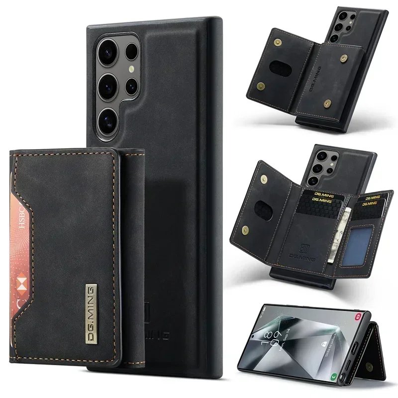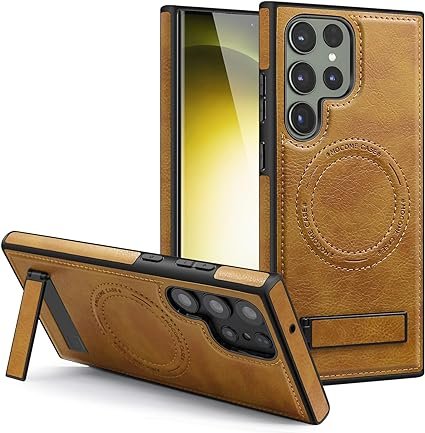 MOCOME Crystal Shield Shockproof Magnetic Stand Series Multifunction Luxury Leather + Rubber TPU Phone Casing for Samsung Galaxy S25 Ultra, S24 Ultra Magnetic PU Leather Magsafe Protective Cover Case