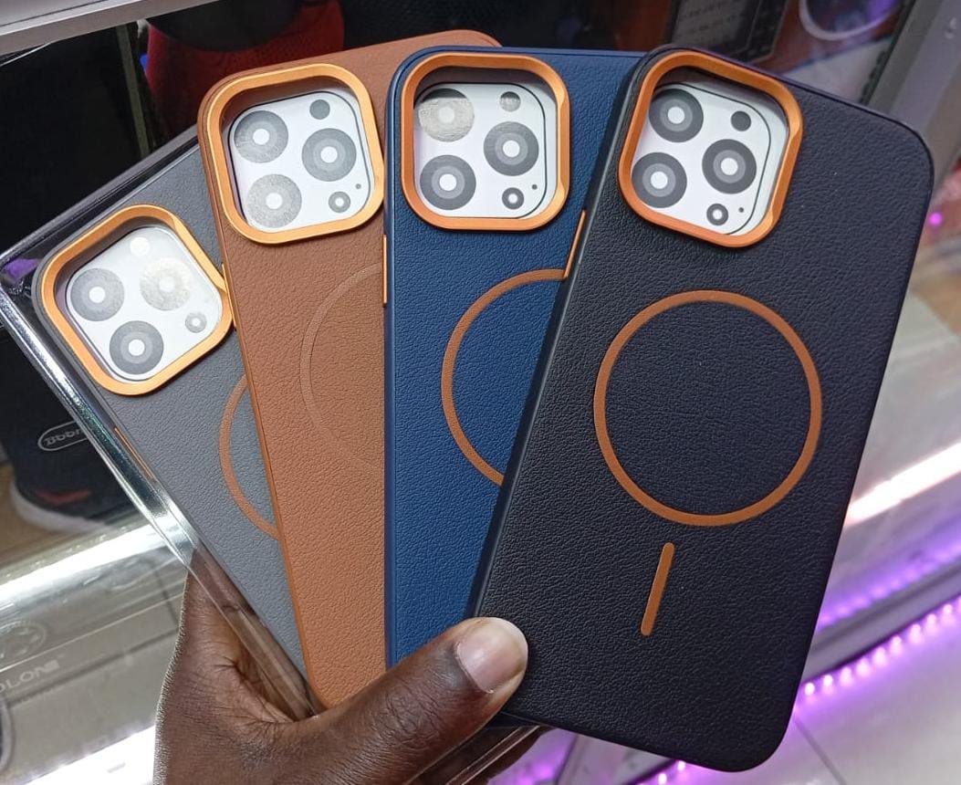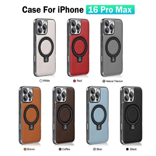 Executive Leather Ring Built-in Lens Film Wireless Case Cover For iPhone Series.