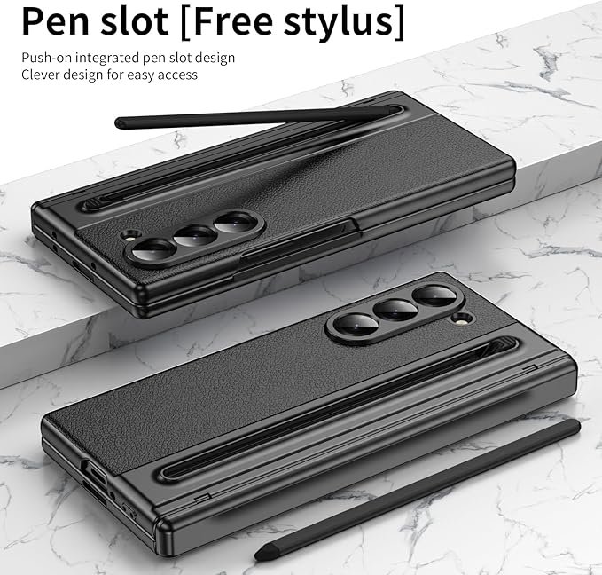 Executive Classy phone case for Samsung Galaxy Z Fold 6, Z Fold 5, Z Fold 4 polycarbonate Hinge Kickstand Case with Screen Film